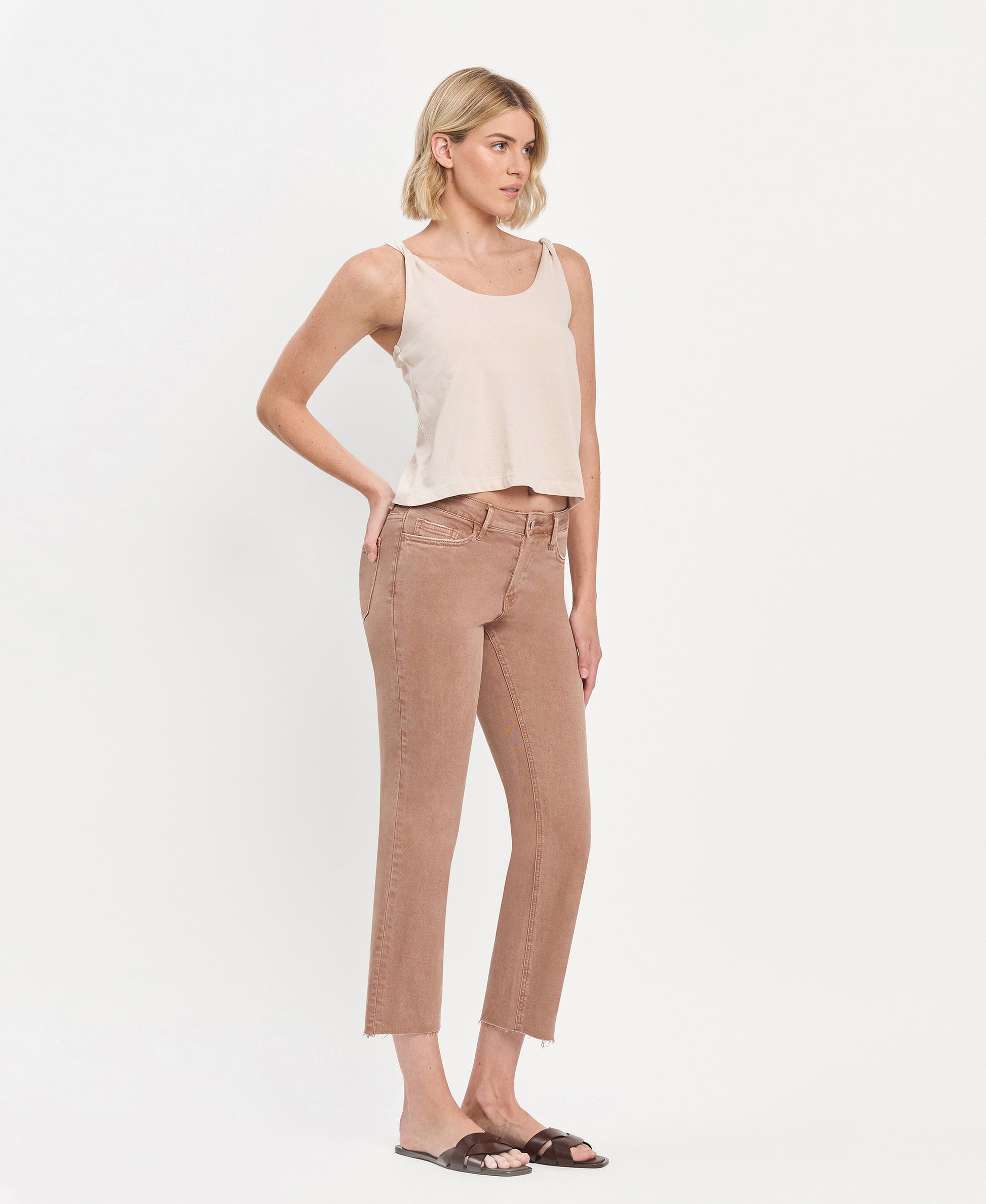 You'll be living in luxury in these Leading Mid Rise Stretch Straight Jeans, featuring comfort stretch denim, perfect mid rise waist, and a cropped length with a clean cut raw hem. With a straight cut that'll keep you looking sharp, you won't wanna take'em off!
